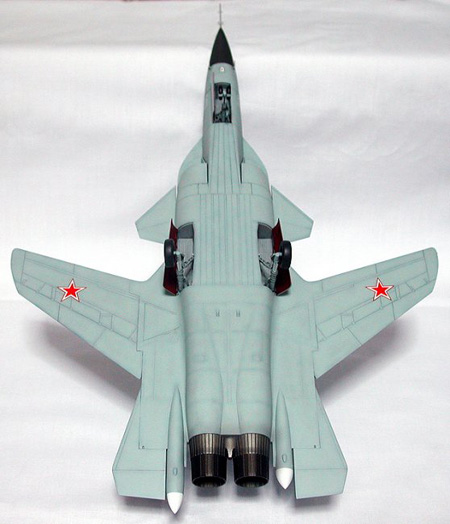 米格 1.44型技术验证机的可变截面楔形进气口位于机腹,进气道呈S形以屏蔽发动机压气机。图片:俄罗斯米格飞机公司("MiG" Corporation Photo)