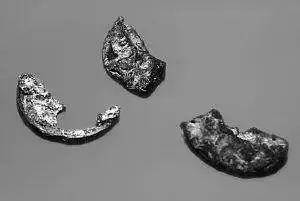 这张照片中是三枚乌黑色弹片,一块直径约有黄豆大小,另外两块约绿豆粒大小。这三枚弹片是从粟裕将军的头颅骨灰里取出的,整整54年,直到他逝世后才被世人知晓。
