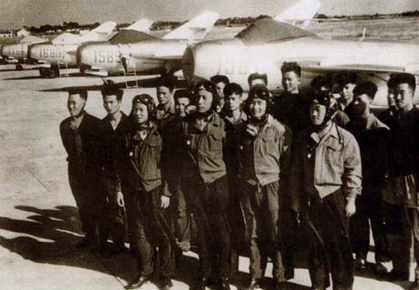 董保存:此时,在第一线指挥作战的师长是后来升任空军副司令的林虎,他果断做出了“航空兵英雄中队”起飞作战的命令。11时7分30秒,“航空兵英雄中队”的四架飞机分别由赵德安、黄振洪、高长吉、张以林驾驶着,冲入云霄,他们将飞行高度保持在距地面200米。要知道,通常战机起飞后应迅速穿过低空云层,攀升到没有云层的高空完成编队,再飞向战场空域。