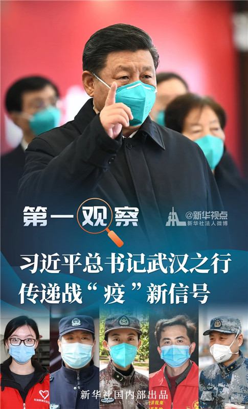 在武汉期间,总书记考察了医院、走访了社区,主持召开电视电话会,发表重要讲话,给前方将士、给武汉人民、给全国人民以极大鼓舞,为打赢湖北保卫战、武汉保卫战进一步指明方向。