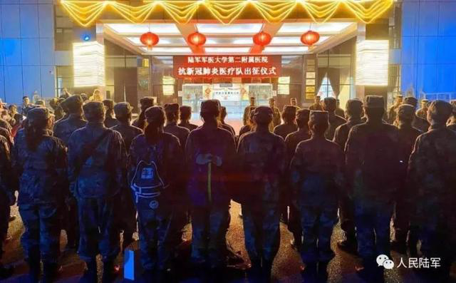 经中央军委批准,除夕夜解放军派出陆军军医大学、海军军医大学、空军军医大学3支医疗队共450人,分别从上海、重庆、西安三地乘坐军机出发,并于24日23时44分全部抵达天河机场支援武汉。2月3日,这3支医疗队统一纳入军队抽组的1400名医护人员中,承担火神山医院医疗救治任务。