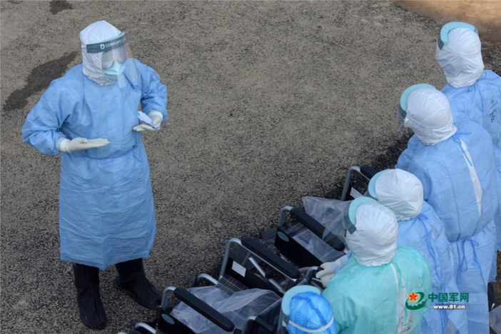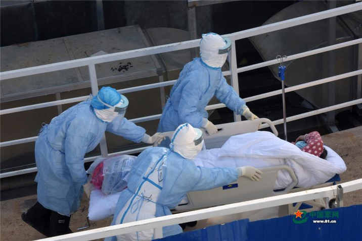 2月4日上午,武汉火神山医院开始正式接诊新型冠状病毒感染的肺炎确诊患者,首批由3家武汉定点收治医院转来的确诊患者在隔离区内接受军队支援湖北医疗队的全面治疗。