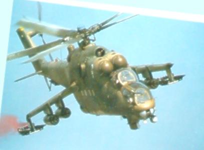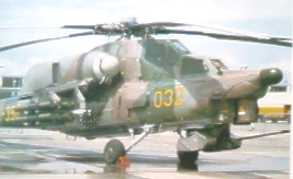 前苏联米里设计局1972年研制的武装直升机。它与美军的AH-64同属重型武装直升机,被称之为“空中坦克”。最大时速310千米,悬停升限4500米,作战半径360千米,最大起飞重量8400千克。主要武器:机头装有1挺12.7毫米机枪,两侧短翼上共有6个挂点,可挂反坦克导弹和火箭弹,最大载弹量2900千克。