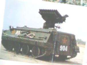 | 我国1981年设计定型的可自动装填40管火箭炮,用于歼灭和压制有生力量、集群坦克等。战斗全重29.9吨,乘员5人,车长宽高为7180X3145X3180(毫米),最大公路行使时速40~42千米,最大射程20580米,射速40发/20秒(齐射)。(履带式) |
