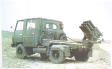 | 我国1980年研制12管火箭炮,用于歼灭和压制有生力量、技术兵器、登陆器材和装甲车辆。1982年6月设计定型,主要配套部件与107毫米1963式火箭炮相同。该炮以车上发射为主,也可分解在地面上发射。初速31.4米/秒,最大飞行速度372米/秒,最大射程8500米,有12根定向管,可单发或连射,携弹量24发,采用NJ221型汽车底盘。该炮结构简单,分解组合方便,射界大,火力机动性好。 |