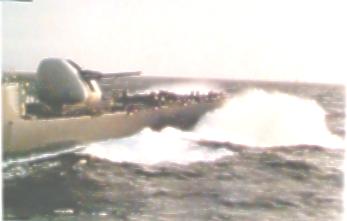 | 我国仿制前苏联KJI302式舰炮的产品,1973年定型。用于对付低空、超低空飞机、直升机、反舰导弹、海上舰艇和陆上目标。火炮为单管转膛式自动炮,4个弹膛对称布置,自动机采用短炮身后坐式。初速1050米/秒,有效斜距4000米,射速2000发/分,有效射程3334米,高低射界-12度~+87度,方向射界90度,炮重1800千克,弹箱容量2X500发。 |