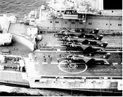 “基辅”级总共载机33架,分别为:12架雅克-38“铁匠”短距/垂直起降战斗机,19架卡-25“激素A”或卡-27“蜗牛”反潜直升机,另有2架卡-25“激素B”直升机用于超视距引导。 |