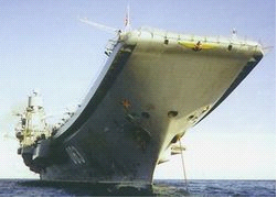 1983年2月22日,前苏联在尼古拉耶夫船厂开工建造第一艘大型航空母舰,该舰又被称为1143.5级,1985年12月5日下水,1991年1月21日正式服役。有意思的是,该舰在建造中先后有过几个名字,“苏联”号、“克里姆林宫”号、“勃列日涅夫”号和“第比利斯”号,由于政治风云的变幻,该舰最后被定名为“库兹涅佐夫”号。
