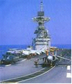 “阿”号全长195.5米,宽24.3米,吃水9.4米,满载排水量16900吨,全通式飞行甲板长175.3米,宽29米,滑跃起飞跑道前部的跃升角为12度。其动力装置为2台LM-2500燃汽轮机,总功率46400马力,最大航速27节,续航力为6500海里/20节。它平时载机22架,包括10架AV-8B垂直/短距起降战斗机,6架“海王”直升机和2架“海王AEW”预警直升机以及4架AB-212直升机;但在紧急情况下可载机37架,其中17架放在机库中,20架放在甲板上。该舰编制舰员600人,另有230名航空人员。