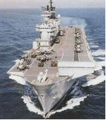 目前,最新一轮改装已经开始。1998年年中,“卓越”号进行了为期7个月的前甲板延伸工程。其“海标枪”防空导弹被拆去,增加了一块400余平方米的甲板面积,原“海标枪”的弹药库被改装成“鹞”GR7的军械舱,这样,“鹞”式飞机上舰就更加方便了。 |