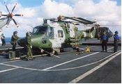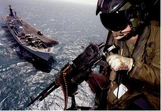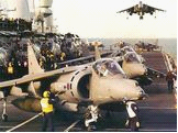 为了应付冷战后形势的需要,皇家海军正式组建了三军联合快速部署部队,并决定在航母上部署空军的“鹞”式攻击机和陆军直升机。1997年底,皇家空军的“鹞”GR7攻击机正式上舰。1998年1月18日,“无敌”号搭载7架“鹞”GR7攻击机和12架“海鹞”FA2战斗机出航,开始执行混合配置后的首次作战使命--配合美军对伊拉克实行空中打击。