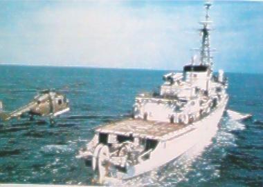 为乔治.莱格级的6号舰,于1988年2月服役。长139米,宽14米,吃水5.7米,满载排水量4490吨。主机采用柴燃交替动力装置,2台柴油机,2台蒸汽轮机,55800马力,双轴推进,航速30节。舰员218名。主要武器:2座L5鱼雷发射管,1座100毫米炮,2座单管四联“飞鱼”导弹装置,1座八联“响尾蛇”对空导弹装置,2架“山猫”直升机。