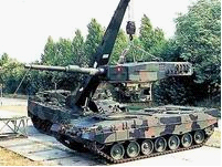 联邦德国20世纪70年代研制的主战坦克(见坦克)。其战斗全重55.15吨,乘员 4 人,坦克最大速度 72 千米/小时,最大行程550千米。主要武器有120毫米滑膛炮(见火炮)1门,配有尾翼稳定脱壳穿甲弹和多用途弹,弹药基数42发。火控系统包括大炮双向稳定、数字式计算机、激光测距、热成像夜瞄装置等。车体和炮塔采用间隙式复合装甲,配有集体式三防装置和自动灭火装置。