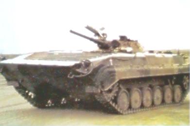 | 前苏联设计的第一代步兵战车,60年代初研制,1967年红场阅兵式上首次亮相,装备苏军及20多个国家的军队。战斗全重13.3吨,乘员3人,载员8人,车高2.15米,最大公路时速65千米,水上时速7千米。主要武器为1门73毫米低膛压滑膛炮。辅助武器为1挺7.62毫米并列机枪和1具单轨式导弹发射架,“赛格”导弹4枚。乘员从车后门出入,车体两侧布有8个射孔,供乘员用自带武器从车内射击。 |