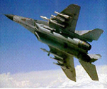 米格-29战斗机,是苏联70年代开始研制的超音速、高性能、有单双座型双发战斗机。它由高尔基等多家飞机制造厂生产,1983年开始装备部队。在研制中突出了它的中、低空格斗能力和下视下射能力。在综合作战能力方面,米格-29丝毫不亚于美国的F-15、F-16等战斗机。