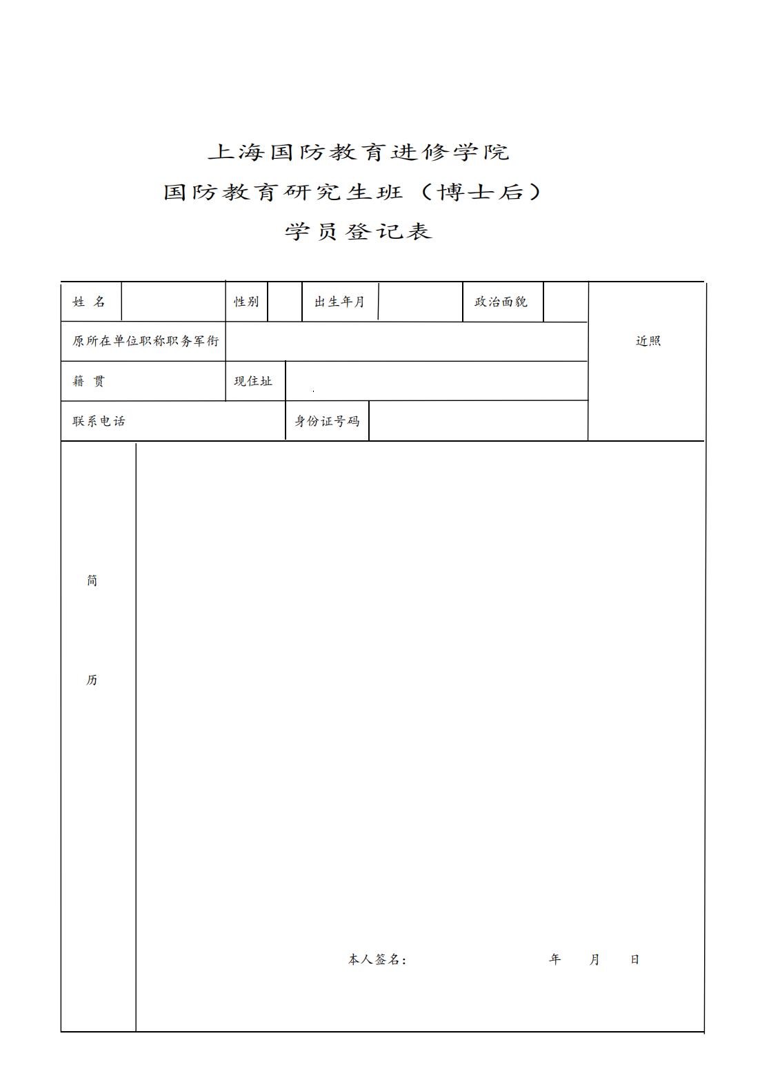 点击下载报名表:博士后登记表
