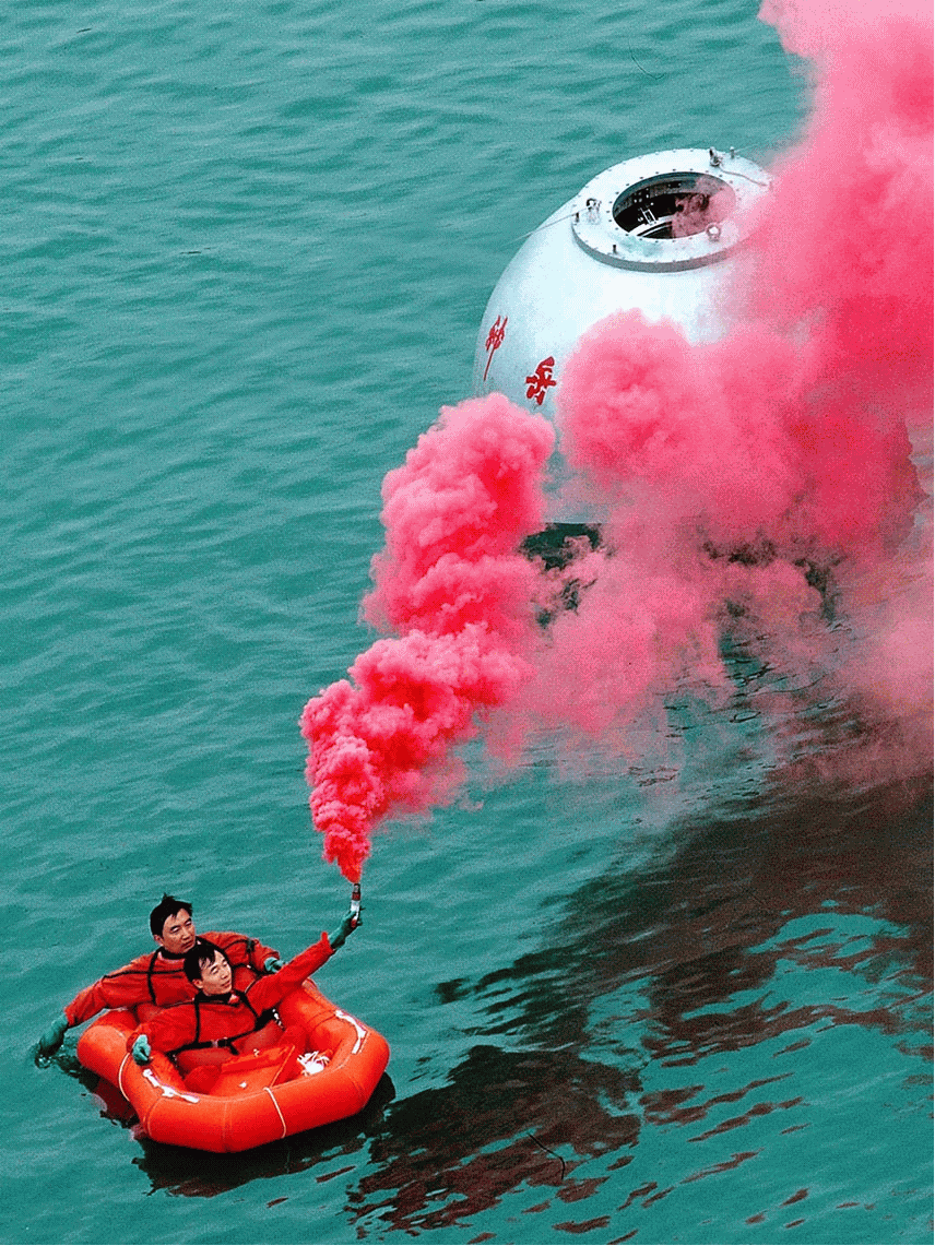 2017年08月17日,邓清明等航天员进行海上救生训练。朱九通 摄