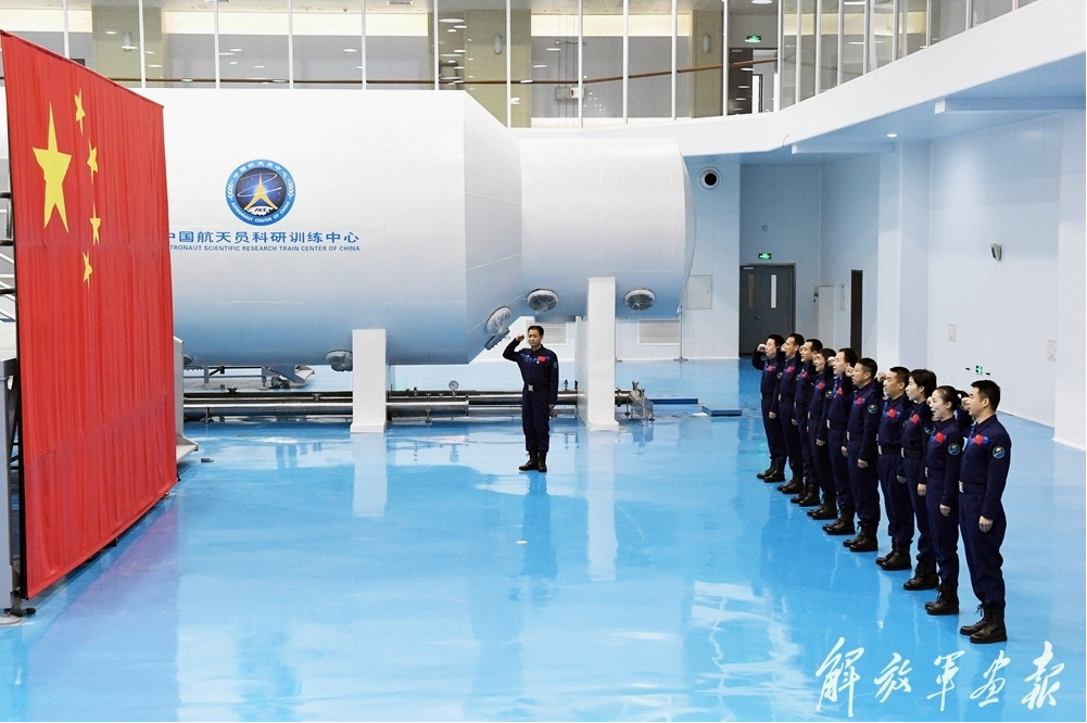 1月4日上午,在纪念中国人民解放军航天员大队成立20周年之际,11名曾经出征太空的中国航天员隆重举行重温入队誓词活动,表达为祖国载人航天事业拼搏奋进的信心斗志。穆瑞林 摄