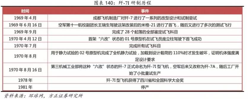 歼-7I型飞机的生产持续到1981年,一共生产了188架,交付187架(含军援朝鲜的40架)。其中“六改”状态的34架,“三改”状态的153架。1978年,歼-7I型飞机获得了四川省和全国科学大会奖。