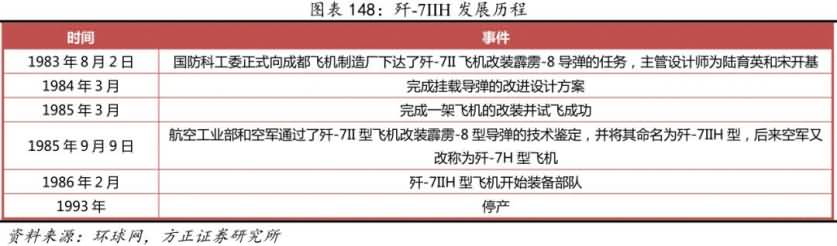 1983年8月2日,国防科工委正式向成都飞机制造厂下达了歼-7II飞机改装霹雳-8导弹的任务,主管设计师为陆育英和宋开基。1984年3月完成了挂载导弹的改进设计方案。经过一年多的时间,1985年3月完成了一架飞机的改装并试飞成功。1985年9月9日,航空工业部和空军通过了歼-7II型飞机改装霹雳-8型导弹的技术鉴定,并将其命名为歼-7IIH型,后来空军又改称为歼-7H型飞机。1986年2月,歼-7IIH型飞机开始装备部队,到1993年停产共生产交付221架。