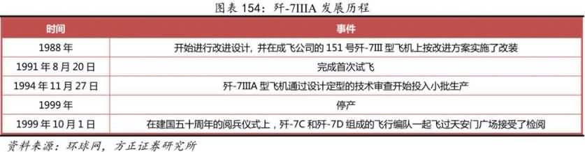 歼-7IIIA型飞机于1988年开始进行改进设计,并首先在成飞公司的151号歼-7III型飞机上按改进方案实施了改装。1991年8月20日,试飞员刘庆礼驾驶该机完成了首次试飞。1994年11月27日,歼-7IIIA型飞机通过设计定型的技术审查开始投入小批生产。1995年12月25日,航空军工产品定型委员会正式批准设计定型。尽管歼-7IIIA作战效能和使用维修性有所提高,但并没有能完全解决歼-7III型飞机的航程短、机动性差的缺陷,因此也只生产了32架就于1999年停产了,交付空军后改称为歼-7D型飞机。1999年10月1日,在建国五十周年的阅兵仪式上,歼-7C和歼-7D组成的飞行编队一起飞过天安门广场接受了检阅。