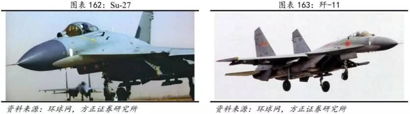 歼-11B:沈飞自行研制的第四代重型战斗机,在引进前苏联的苏-27SK后,公司又提高航电系统效能,在苏-27SK战机的设计基础上,换装了国产综合火控系统、全玻璃化座舱、四余度数字式电传操纵系统、涡扇10“太行”涡轮风扇发动机等核心部件,使歼-11B的最大作战能力都激发了出来。