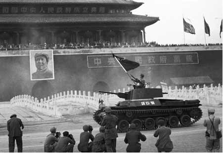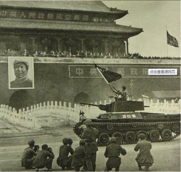 开国大典上,“功臣号”引领坦克方队通过天安门,接受检阅(资料)