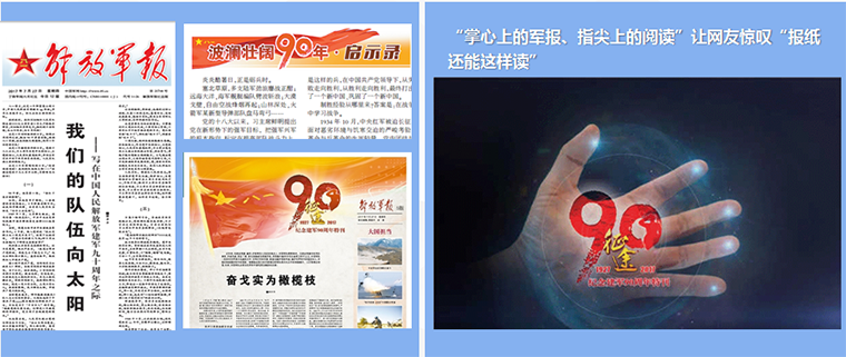 报网联动,一体发展。2018年“新春走军营”采访活动,集中体现了习主席两年前在党的新闻舆论工作座谈会上提出的“要推动融合发展,主动借助新媒体传播优势”的要求:解放军报及其子报子刊、网络新媒体记者一起行动,一次采集,文字、图片、视频、VR产品等多种生成,通过军报融媒体技术平台分发后,在传统媒体和网络新媒体30多个平台发布,产生了多元叠加、同频共振的传播效果。