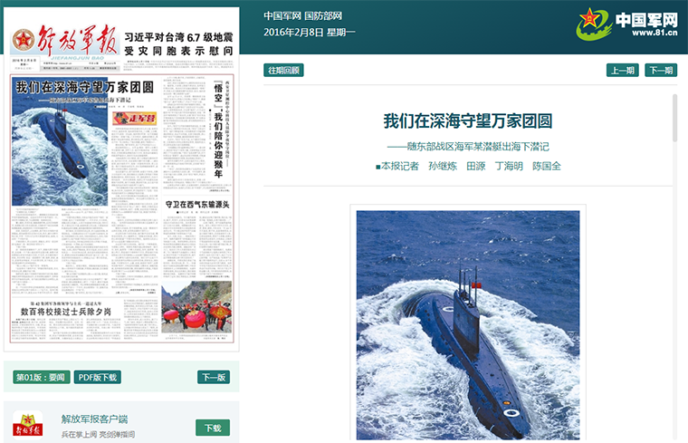 2015年12月27日,就在习主席视察解放军报社两天之后,陆军原第27集团军从河北移防山西,成为全军第一个因改革而进行部署调整的军级单位。第一时间,解放军报社领导带领编辑记者深入该部队采访,动情地写下长篇通讯《当那一天真的来临》。2016年2月7日,农历猴年除夕,解放军报社领导带领编辑记者来到东海某军港,随海军潜艇出海下潜,采写了现场目击记《我们在深海守望万家团圆》。此后每年,军报领导都身先士卒带头“走转改”,推出了一篇篇接地气、有温度、带露珠的重头稿件。