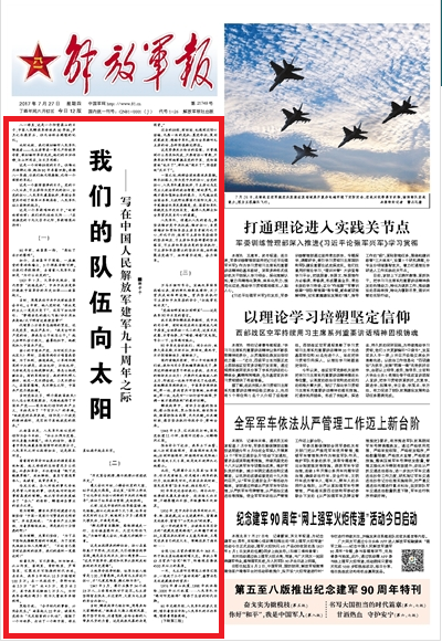 就在距这一天不到两个月的2015年12月25日,习近平主席视察解放军报社并发表重要讲话,强调新形势下办好解放军报,必须坚持军报姓党、坚持强军为本、坚持创新为要,勉励解放军报要政治上更强、传播上更强、影响力上更强,为实现中国梦强军梦提供有力思想舆论支持。