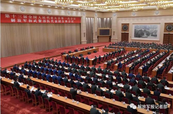 3月7日上午,出席十三届全国人大一次会议的解放军和武警部队代表团举行第一次全体会议。记者冯凯旋 摄