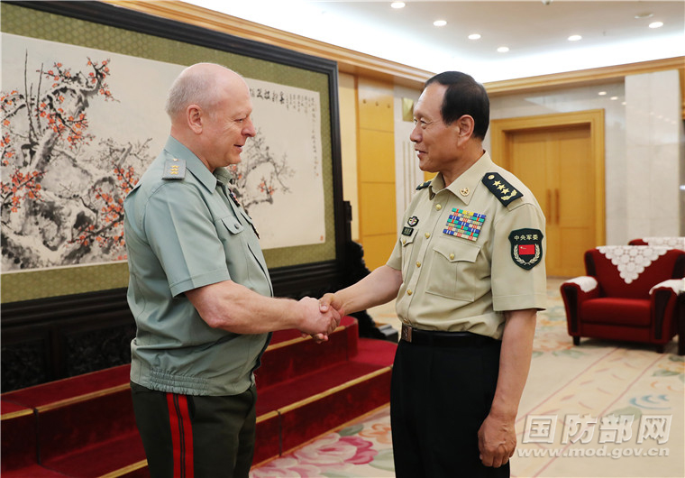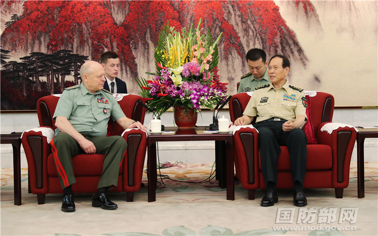 国务委员兼国防部长魏凤和7月3日上午在北京八一大楼会见了来访的俄罗斯陆军总司令萨柳科夫。