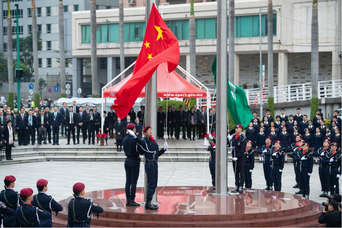 12月20日,澳门特别行政区政府在澳门金莲花广场举行升旗仪式,庆祝澳门回归祖国19周年。新华社记者 张金加 摄