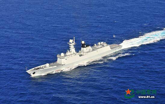 052C型“长春”号导弹驱逐舰,被誉为“中华神盾”,是我国自行研制设计生产的新型封闭防空型导弹驱逐舰,舷号150,最大长度155米,宽17米,标准排水量5700吨,满载排水量6000余吨,可单独或协同海军其它兵力攻击敌水面舰艇、潜艇,具有较强的远程警戒、探测和区域防空作战能力。