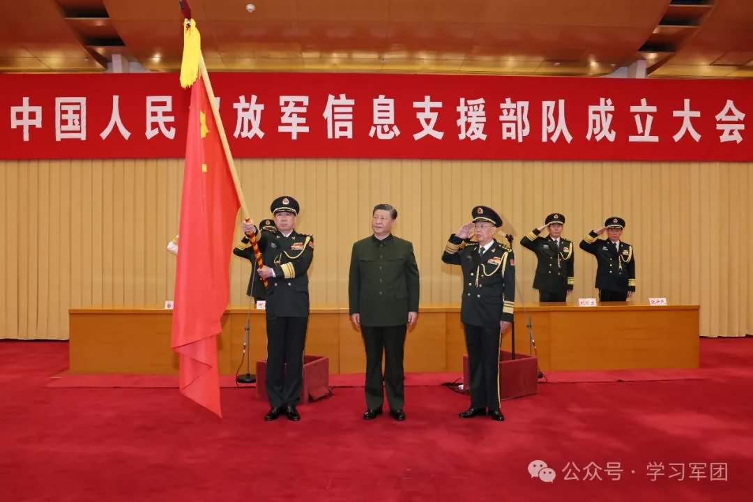 解放军报北京4月19日电(记者欧灿、李建文)中国人民解放军信息支援部队成立大会19日在北京八一大楼隆重举行。中共中央总书记、国家主席、中央军委主席习近平向信息支援部队授予军旗并致训词,代表党中央和中央军委向信息支援部队全体官兵致以热烈祝贺。他强调,要贯彻新时代强军思想,贯彻新时代军事战略方针,坚持政治建军、改革强军、科技强军、人才强军、依法治军,聚焦备战打仗,按照体系融合、全域支撑的战略要求,锐意进取,扎实工作,努力建设一支强大的现代化信息支援部队。