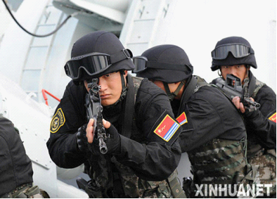 第五批护航编队特战队员在进行反海盗训练(3月2日摄)。