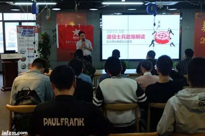 ▲2017年10月26日,由军谷·退役军人创业实训基地主办“脱下军装·继续担当”交流沙龙,为退役军人解读退役政策、介绍创业经验。(孙达供图)