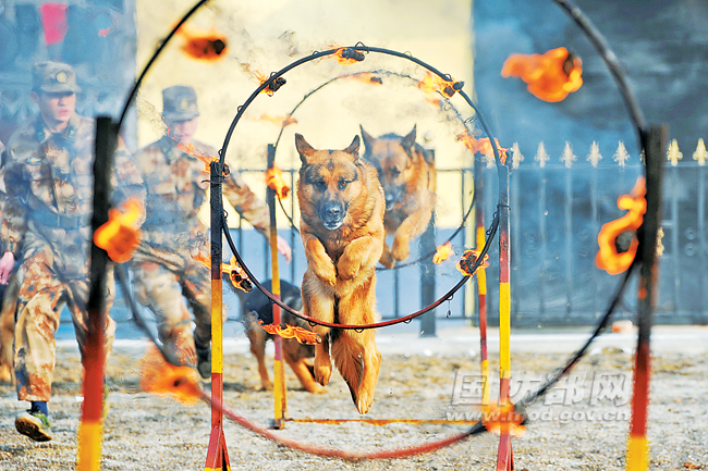 “袭!”训导员话音未落,只见军犬“小闪”闪电般扑向担任“假想敌”的助训员,透过“小闪”的凶猛扑咬,你能感受到军犬的血性虎气和严守指令的忠诚。这是3月31日,济南军区军犬队训练的一幕。
