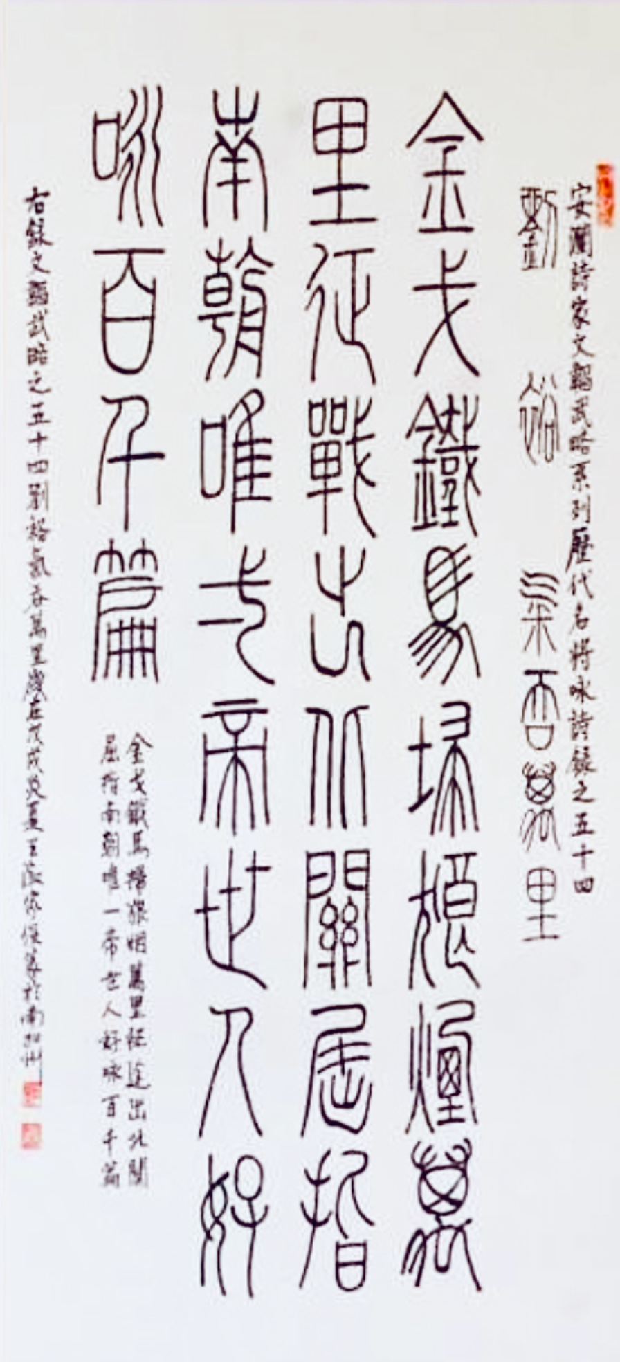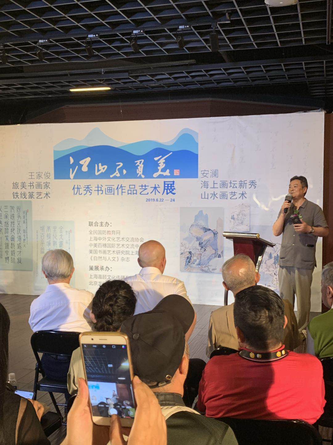 由全民国防教育网,上海中外文化艺术交流协会,中美百穗国际艺术交流中心等单位联合主办的《江山不负美》大型书画作品艺术展日前在上海壹号美术馆开幕。《江山不负美》大型书画作品艺术展中安澜女士所撰写的历代百名名将七言古体诗经过王家俊老先生铁线篆书法艺术的演译,珠联壁合,相得益彰!这是一场别开生面的艺术盛典,也体现作者对英雄,对军人滿怀深情的尊重和热爱!在某种意义上,这场展事也是一场全民国防教育的展事。它展出的不但是独具一格的书画艺术风格,更是全民国防教育的艺术成果。本次展会从6月22日起至24日止为期三天。