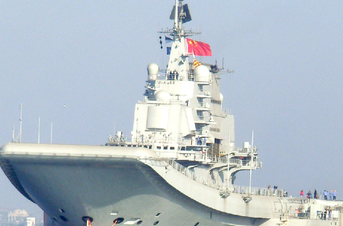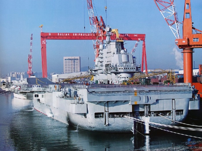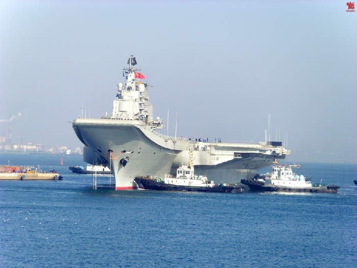 环球网国际军情中心2012年2月14日消息:中国航母瓦良格号目前正在大连准备第5次和第6次试航,图为试航回航时的现场。